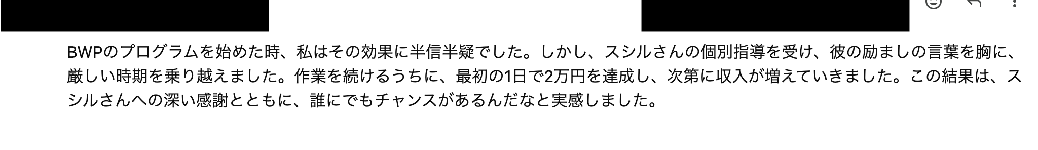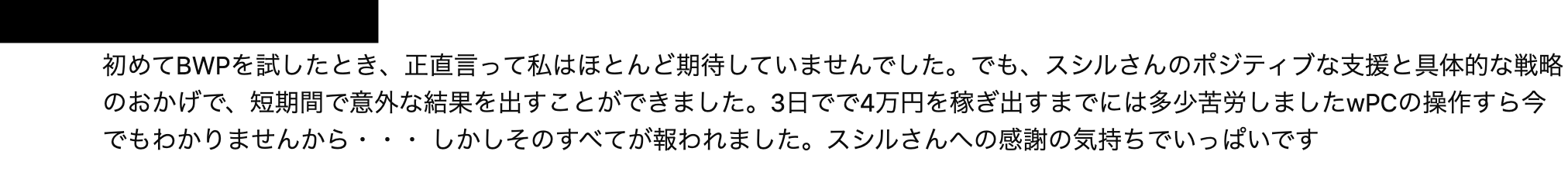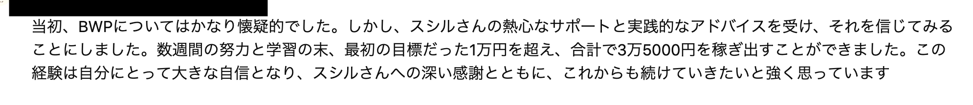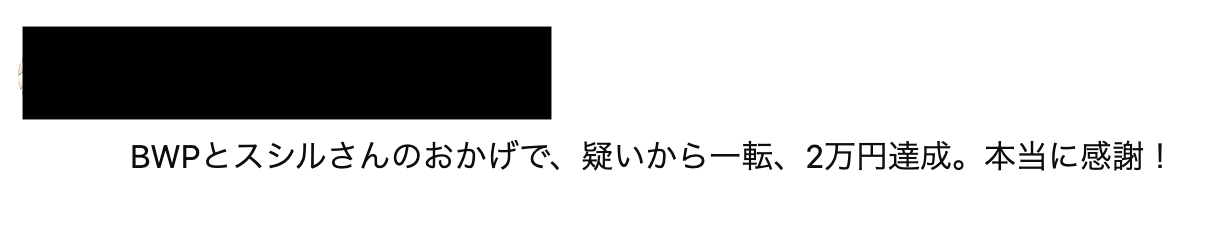 まずこちらはBWPを実際に成果を出していただいた方の声です