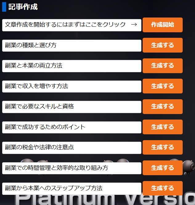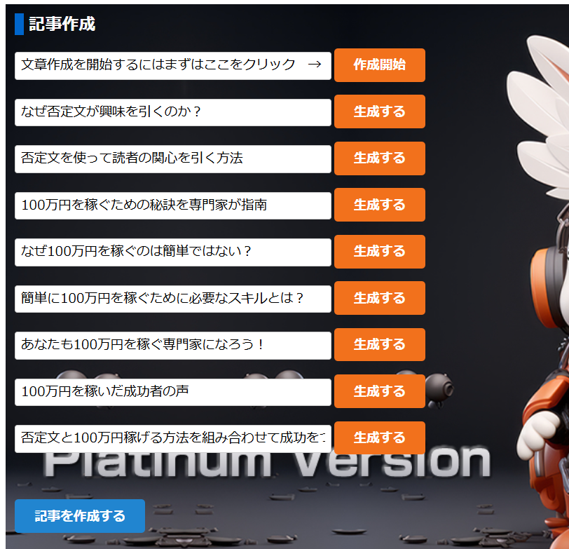 これは、実際rabbitプラチナムに書かせた「副業」だけで書かせた見出しです