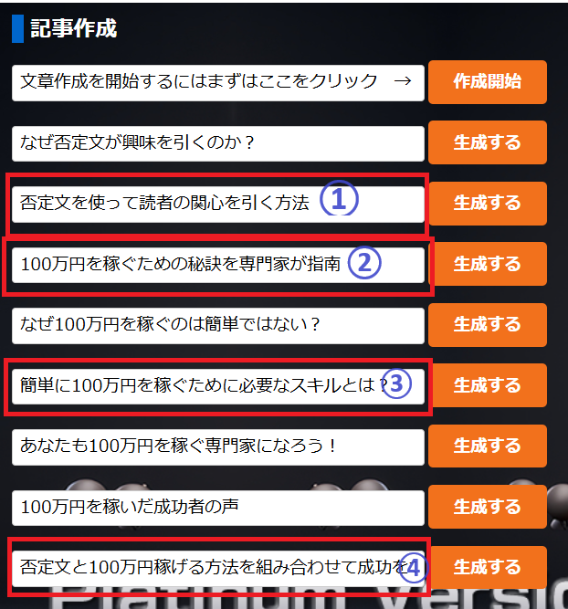 この中から、僕は4つほど使って記事を作成していきます