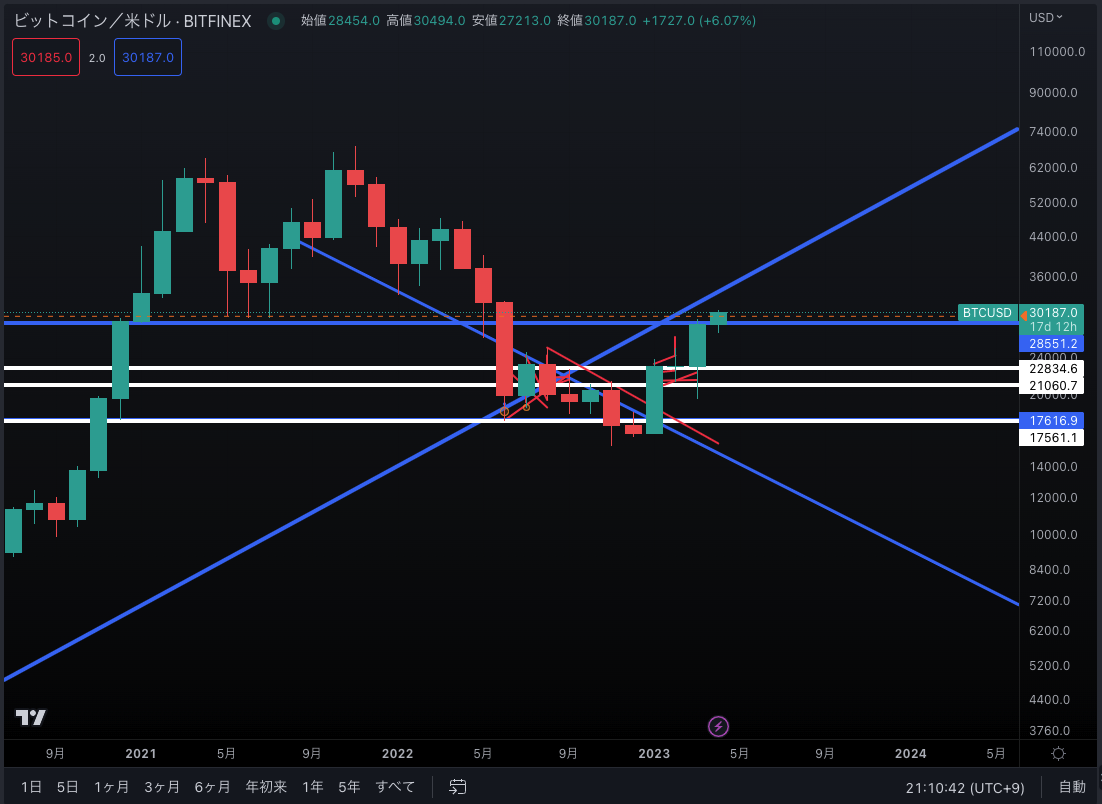 しかし、月足では今までにないほどストロングな月足での陽線がついております。