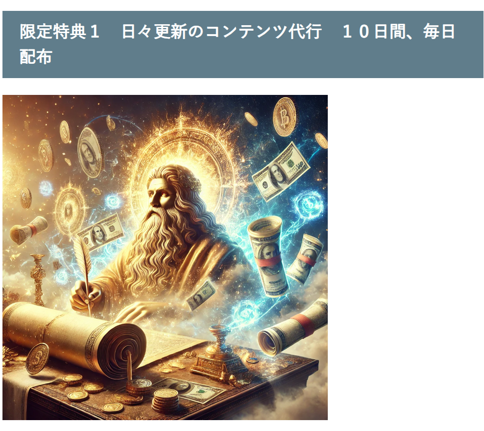 その後も継続的に収益が生まれるようにした代行特典を作っております。