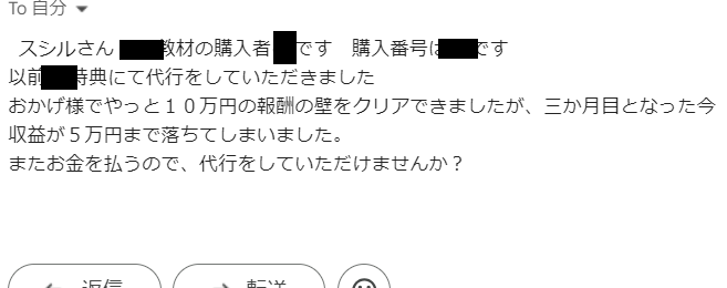 スシルさん ○○教材の購入者○○です 購入番号は○○です