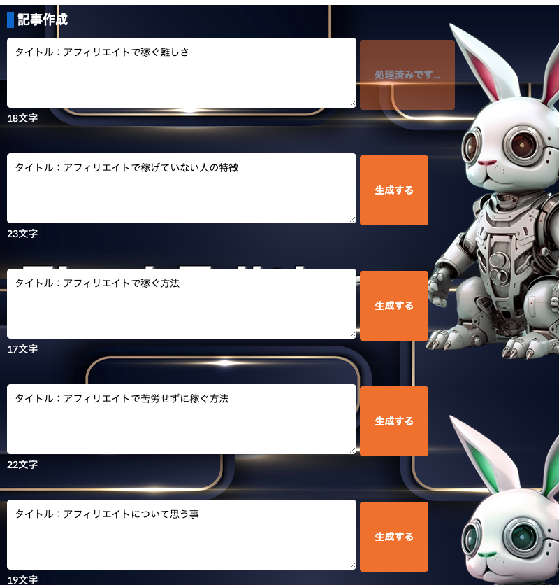「リライト指示をしてもラビットAIが独自の文章を入れるあまりに機械的な文章」になります。
