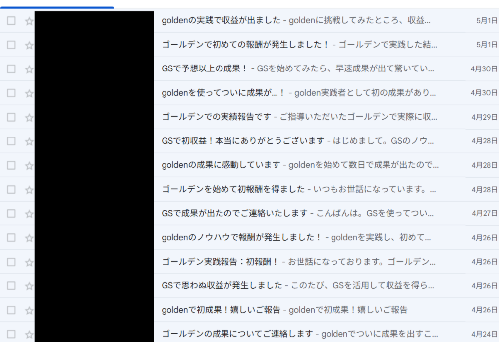 ただ、これはGS(goldenshortcut)を購入した人が210人中90人の実績であり半分以上の方は「成果の数百円~1万円程度」方ばかりです。
